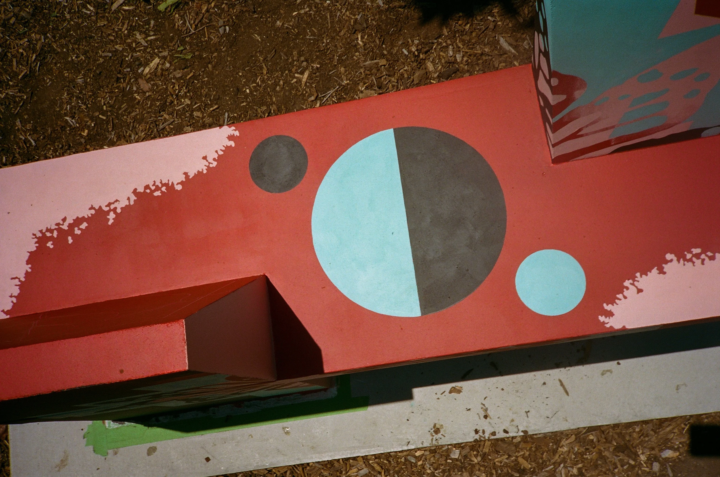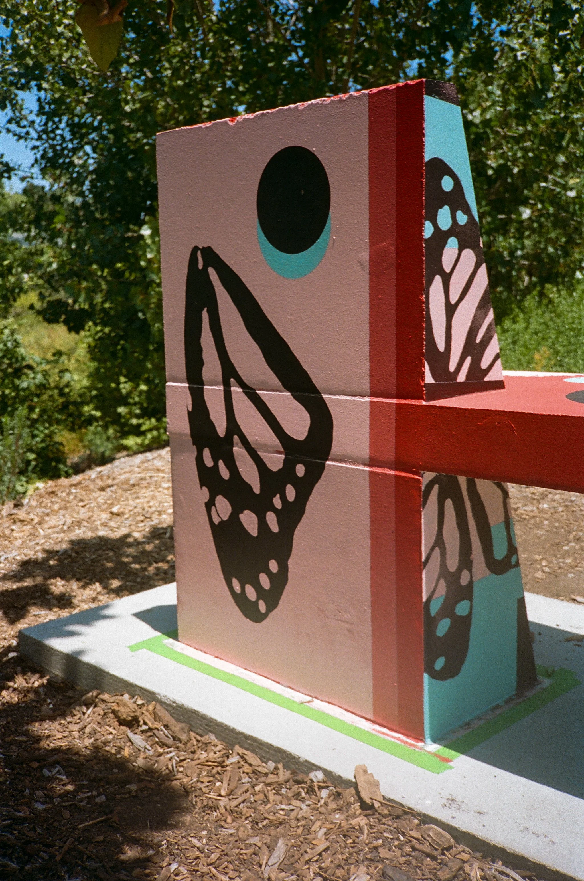 San Luis Obispo Octagon Barn- specific mural- benchproject for local history reflection. collaboration with Race Matters SLO and Cal Poly Architectural Department, San Luis Obispo.